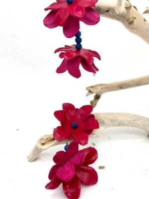 Χειροποίητα, μοναδικά, δερμάτινα σκουλαρίκια με φούξια λουλούδια!