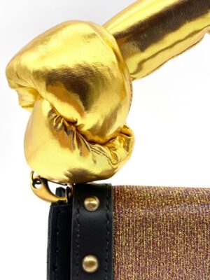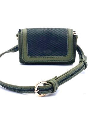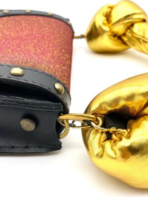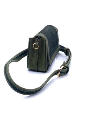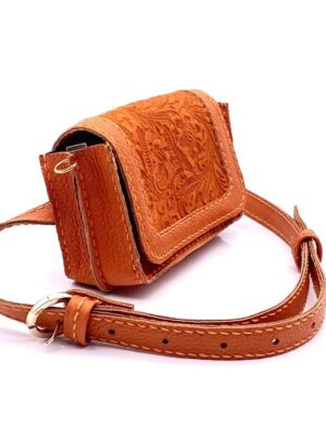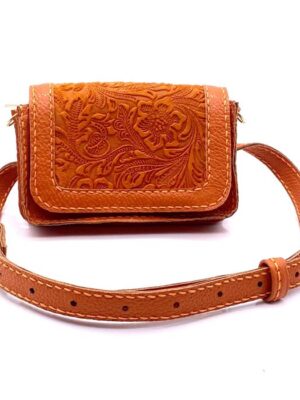 Γυναικεία χειροποίητη, μοναδική, δερμάτινη τσάντα χειρός και μέσης. Κατασκευασμένη εξ ολοκλήρου στο χέρι από ιταλικό δέρμα Α’ ποιότητας, με τέλεια υφή και πολύ καλή αντοχή. Σύνδεση των στοιχείων της τσάντας με , saddle stitch, με κερωμένη κλωστή. Αποτελείται από ένα εσωτερικό που μπορεί εύκολα να χωρέσει τα πιο απαραίτητα γυναικεία αντικείμενα. Για παράδειγμα, κινητό τηλέφωνο, πορτοφόλι, κλειδιά. Κλείνει με μεταλλικό κούμπωμα. Εσωτερική επένδυση με κολλητή δερμάτινη φόδρα. Το καπάκι στολισμένο με χρήση επένδυση και μεταλλικά μπρούτζινα στοιχεία. Η λαβή της τσάντας αποτελείτε από μαλακό, χρυσό ύφασμα με δυο κόμπους στις άκρες. Διαστάσεις τις τσάντας: πλάτος 24 cm, ύψος 15 cm, βάθος 5 cm. Επιπλέον, χειροποίητη ζώνη μέσης macro 110 cm.Σχεδιάστηκε και δημιουργήθηκε με μεγάλο μεράκι. Ιδανική επιλογή για μια μοναδική εμφάνιση που θα σας δώσει χαρακτήρα και στυλ. Είναι ο τέλειος συνδυασμός άνεσης και ποιότητας.
