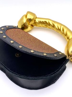 Δερμάτινη, χειροποίητη τσάντα με χρυσή επένδυση στο καπάκι.