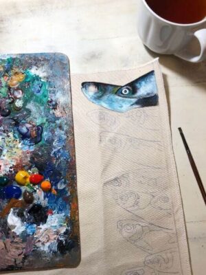 Μια μοναδική, διακοσμητική, βαμβακερή θήκη μαξιλαριού που θα στολίσει τον καναπέ ή το κρεβάτι σας και θα δώσει ένα ξεχωριστό στιλ στο χώρο σας. Ψάρια ζωγραφισμένα στο χέρι θα σας ταξιδέψουν κοντά στη θάλασσα, στις καλοκαιρινές μέρες των διακοπών. Στο κάτω μέρος διαθέτει φερμουάρ και στις άκρες χειροποίητα πον πον. Πλένεται στο πλυντήριο στους 30 βαθμούς και σιδερώνετε την ζωγραφιά από την ανάποδη μεριά.