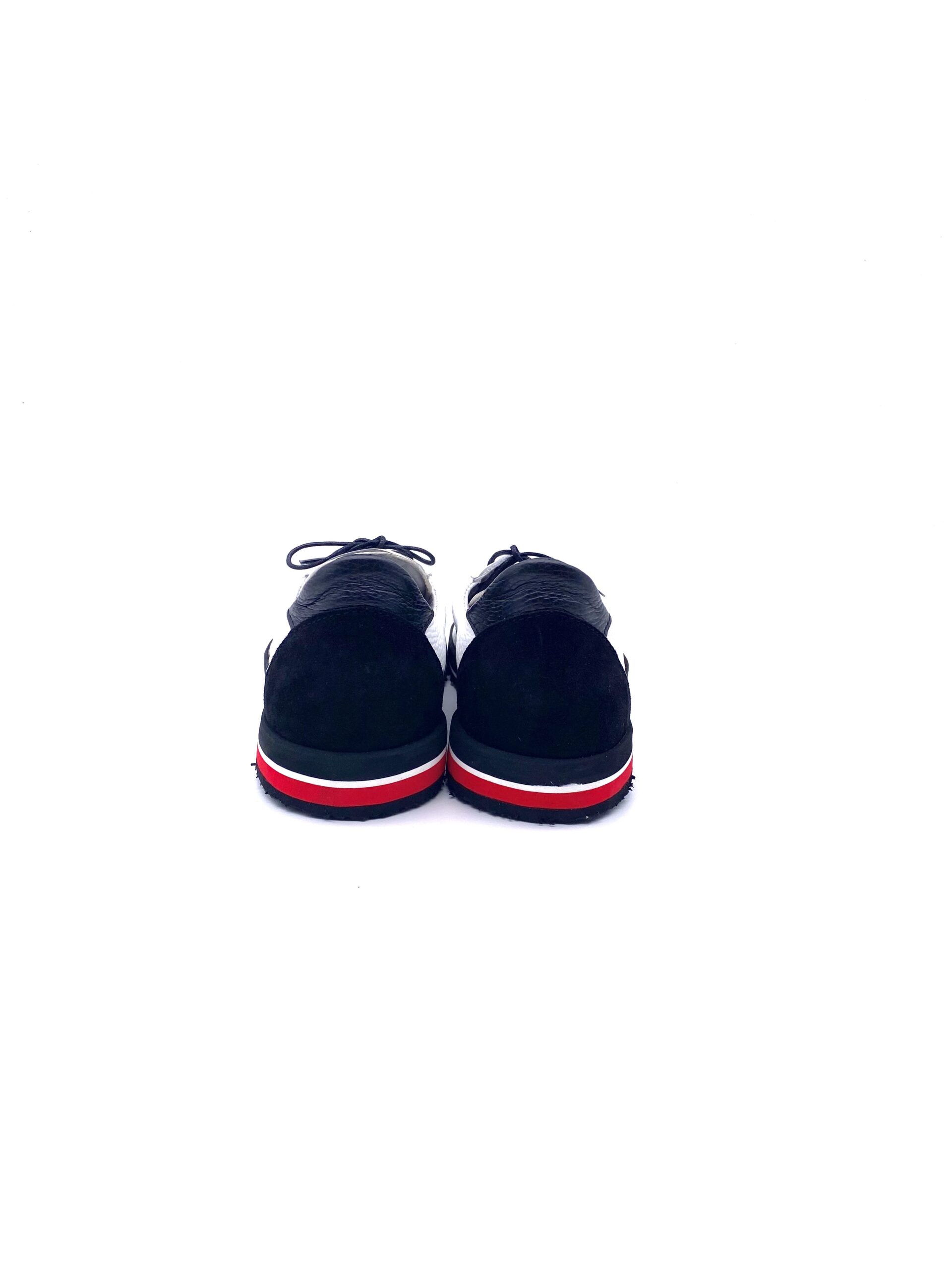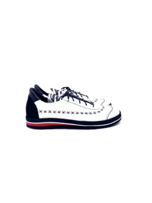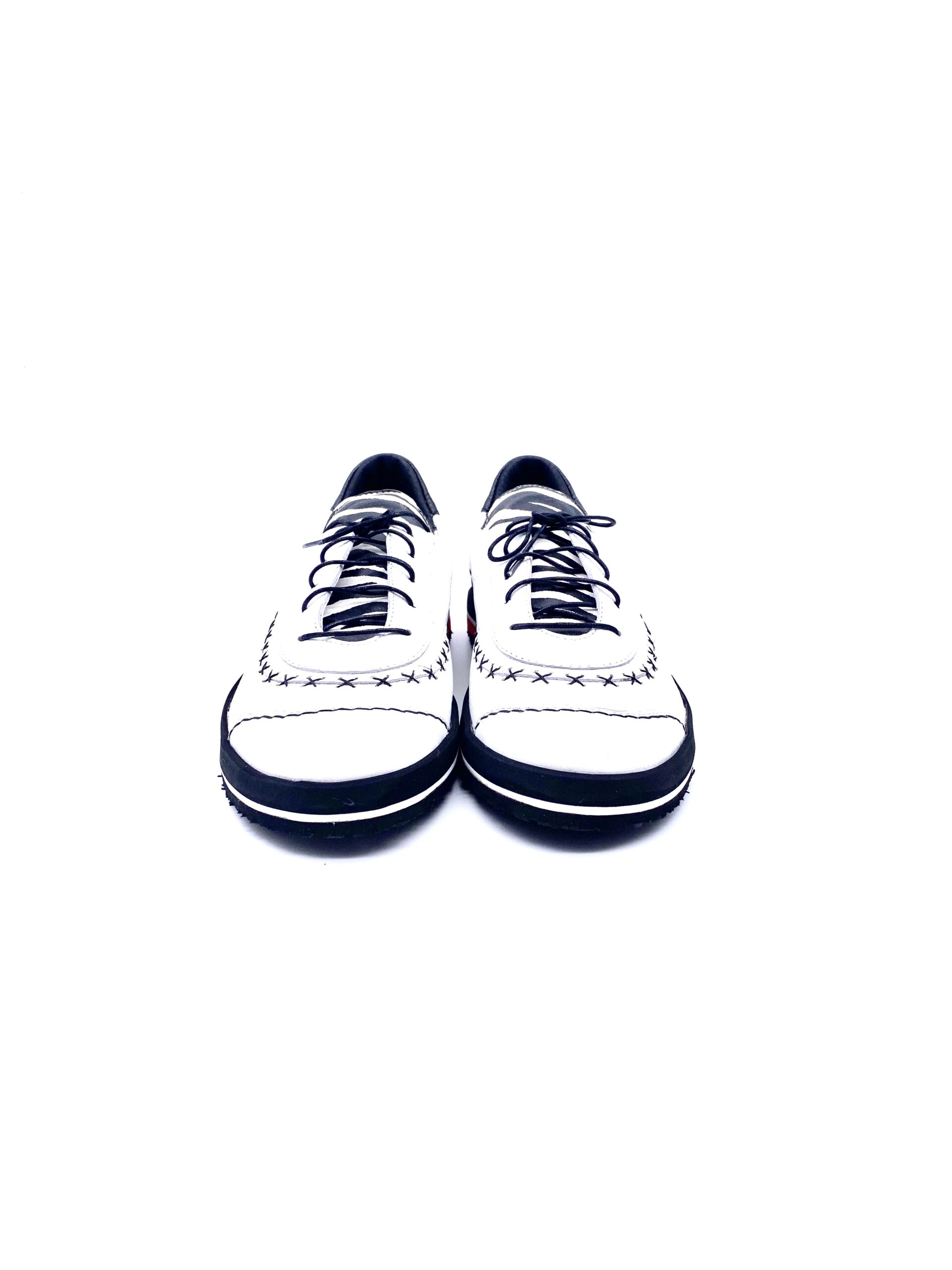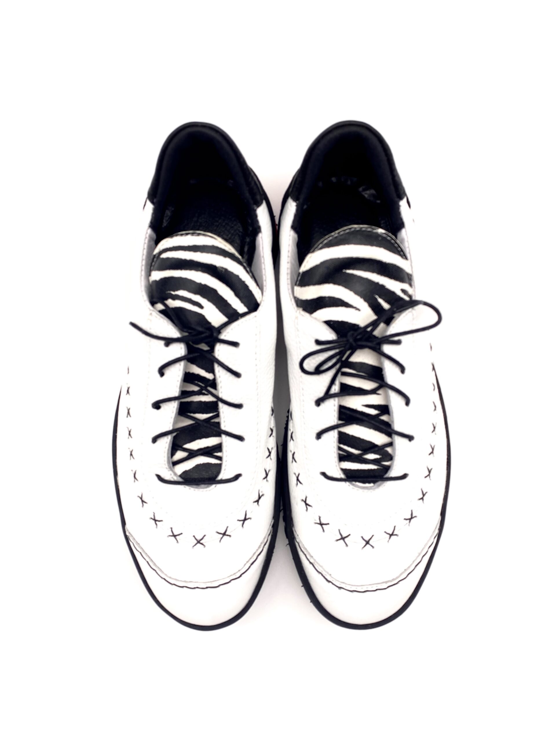 Δερμάτινα σνίκερς, κατασκευασμένα εξ ολοκλήρου στο χέρι, σε άσπρο-μαύρο χρώμα.